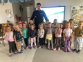 W piątek do naszego przedszkola przybyli policjanci. Głównym celem wizyty było przypomnienie podstawowych zasad bezpieczeństwa. Nasi goście przybliżyli dzieciom podstawowe zasady bezpiecznego poruszania się po drogach, przypomnieli numery alarmowe oraz zasady zachowania się podczas spotkania z nieznajomym. Nasze przedszkolaki dowiedziały się, jak bezpiecznie podróżować, jak ważne jest zapinanie pasów bezpieczeństwa podczas jazdy samochodem. Policjanci nawiązali również do konieczności noszenia ubrań i obuwia posiadającego elementy odblaskowe. Podczas spotkania przedszkolaki zadawały pytania oraz dzieliły się swoimi doświadczeniami. Miały też okazję obejrzeć samochód policyjny i spotkać się z Pyrkiem. Wizyta zakończyła się podziękowaniami oraz zrobieniem wspólnego zdjęcia. Wszystkie dzieci odpowiadały wzorowo i mamy nadzieję, że bezpiecznie będą codziennie przychodziły do przedszkola i wracały do domu.