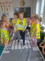 Dzieci z dużym zaangażowaniem uczestniczyły w zabawach dotyczących bezpieczeństwa. Podczas zajęć utrwaliły zasady bezpiecznego poruszania się po drodze oraz przypomniały sobie znaczenie kolorów świateł na sygnalizatorze. Poznały także i utrwaliły najważniejsze znaki drogowe, które mogą spotkać w codziennych sytuacjach. W nauce i praktycznym zastosowaniu zasad bezpieczeństwa pomogło nam miasteczko drogowe, które pozwoliło dzieciom w zabawie odtworzyć realne sytuacje drogowe i sprawdzić swoją wiedze w praktyce.